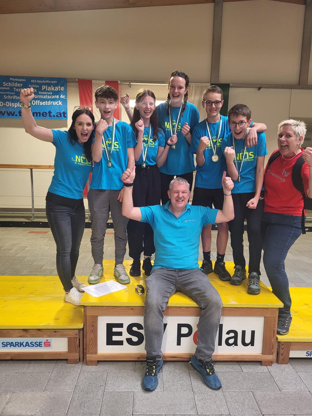 Auf Eigenregie hatten einige Jugendliche der 4b den Wunsch, sich in den Stocksport weiter zu vertiefen. Es wurde mit Alexandra Szumer eine Trainerin engagiert, Trainingszeiten außerhalb der Schule vereinbart und nach 2 Monaten Training kam die Idee auf, auch an den diesjährigen Landesmeisterschaften für Schulen teilzunehmen. Die Begeisterung der Jugendlichen nahm auch nicht ab, als sie erfuhren, dass die Meisterschaften an einem unserer schulautonomen freien Tage stattfinden soll, alle wollten trotzdem teilnehmen. Und so ging es für unser Team nach nur 3-monatiger Zusammenarbeit nach Pöllau mit dem Ziel, nicht Letzter zu werden. 14 Mannschaften spielten sich den Titel steirischer Landesmeister aus.